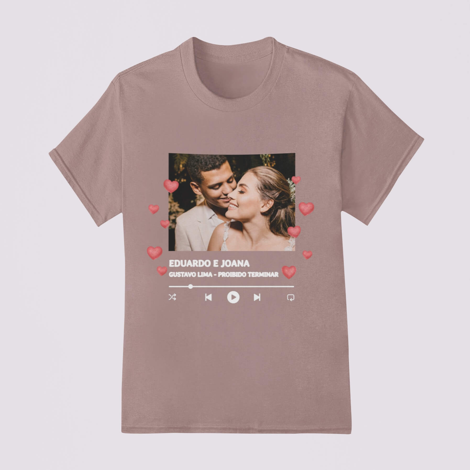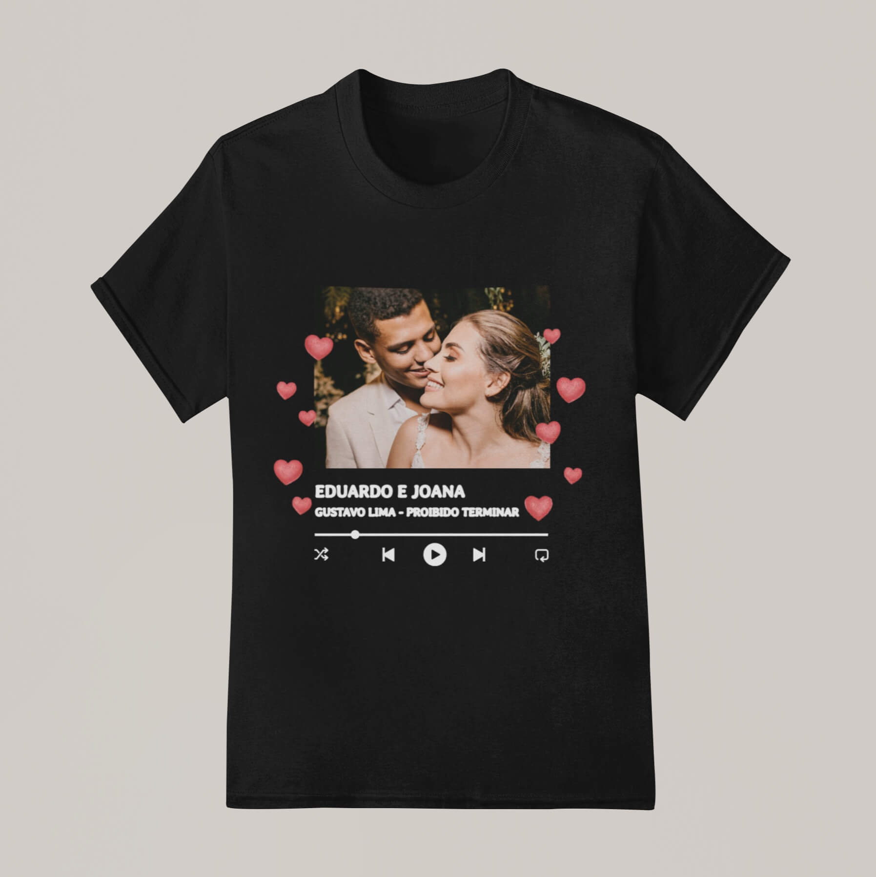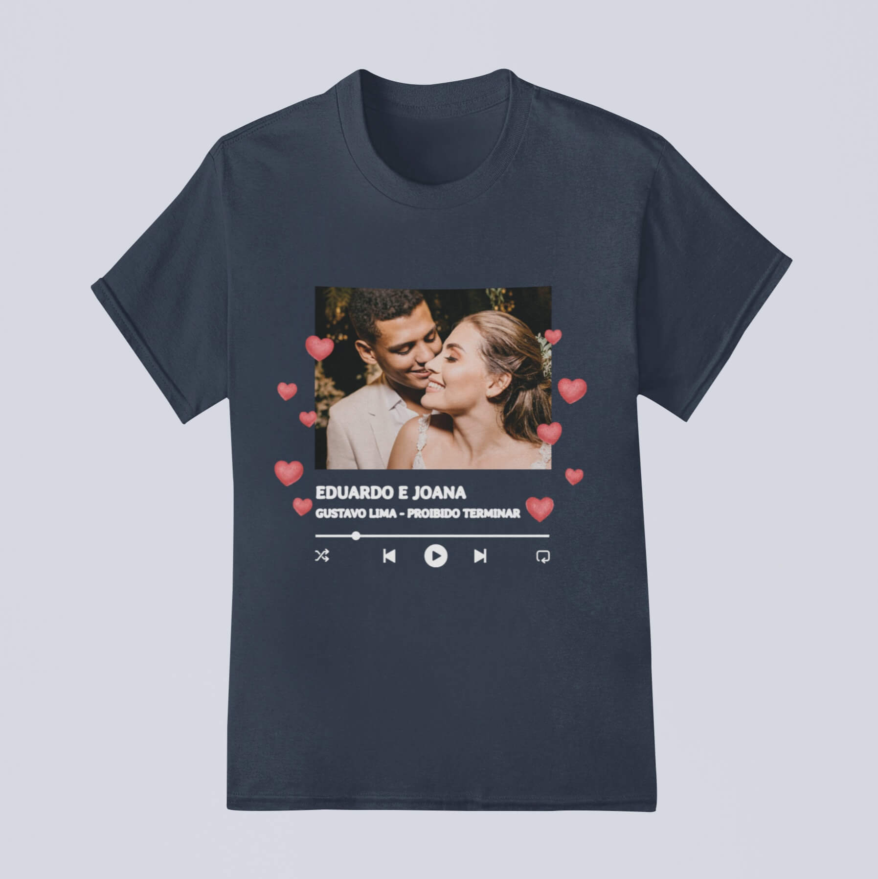 Compartilhe sua música favorita com estilo e o amor da sua vida! Personalize camiseta, infantil ou body com frases ou músicas especiais. Conforto premium garantido. Aproveite 20% OFF, frete grátis na 2ª peça e até 6x sem juros.
